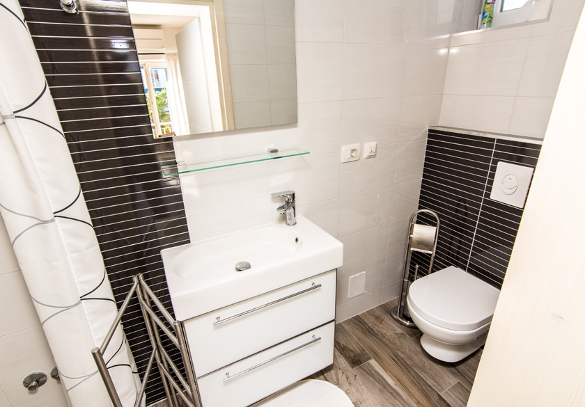 - sadržaj apartmana: kupaonica sa tuš kabinom, WC, SAT/TV, free WiFi